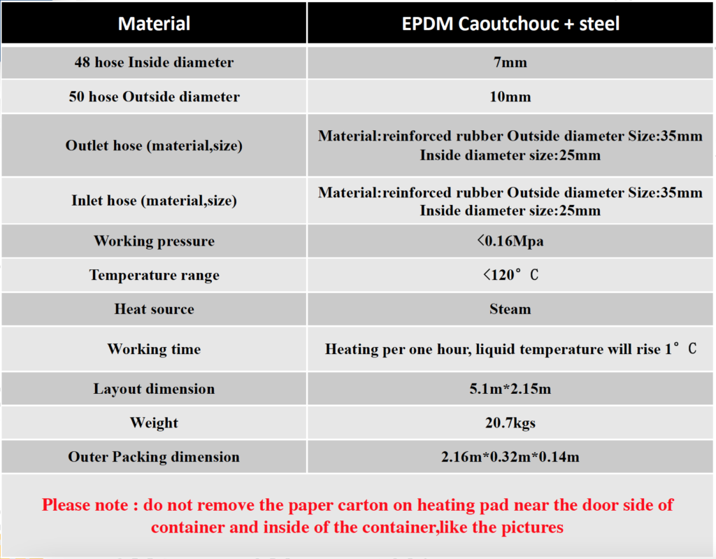 Through heat conduction, it plays the role of heating the liquid inside the flexitank. it has the advantages of simple structure, high thermal efficiency and no damage to the flexitank.